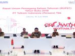 Direktur Utama PT Telkom Indonesia (Persero) Tbk Ririek Adriansyah (ketiga kanan) menghadiri Rapat Umum Pemegang Saham Tahunan (RUPST) di Jakarta, Jumat (19/6/2020). Read more…